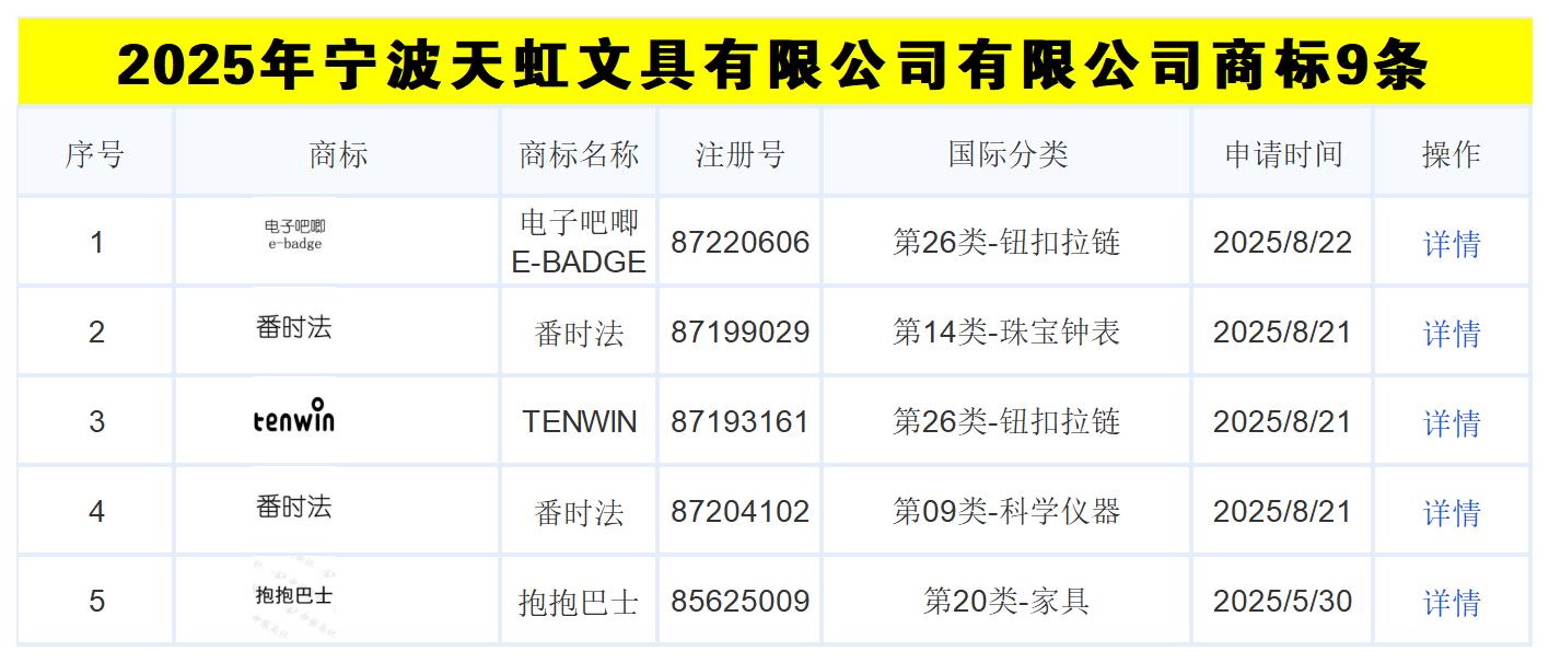 宁波杰丽斯文具有限公司2025年新增商标(3条)2025.11.19 [2025-11-19]