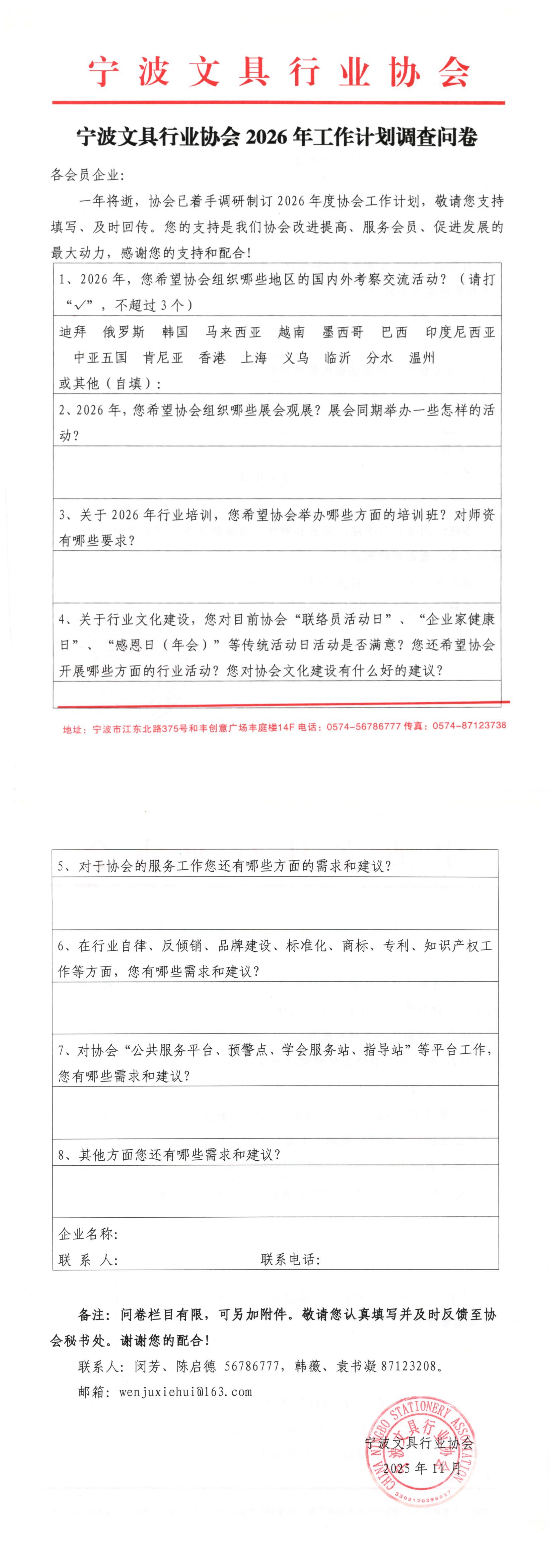 - 2025-11-28宁波文具行业协会2026年工作计划调查问卷