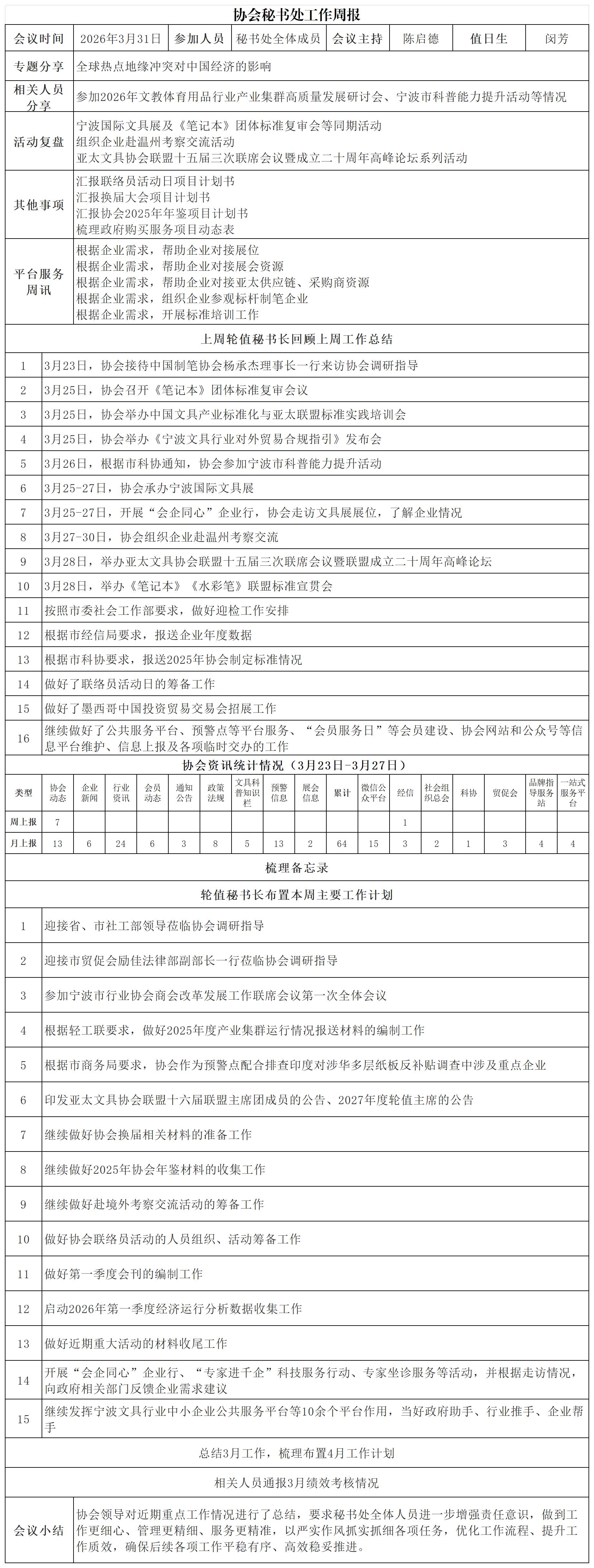 - 2026-04-02宁波文具行业协会3月31日工作周报